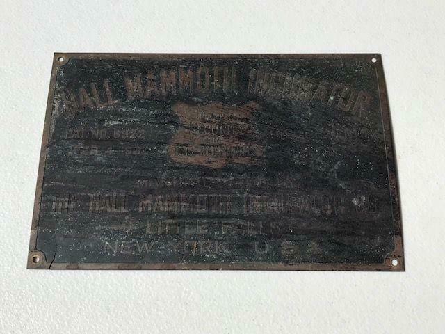 Vintage 1902 Patent Brass Industrial Name Plate Sign Hall Mammoth Incubator NY