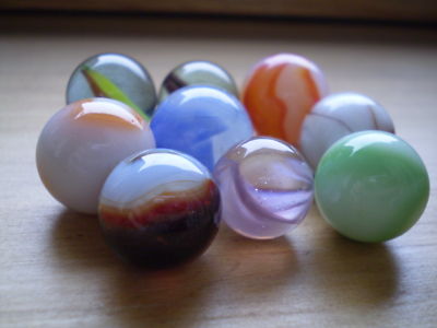 BEAUTIFUL MIXED VINTAGE GLASS MARBLES c.1940s ONWARDS.