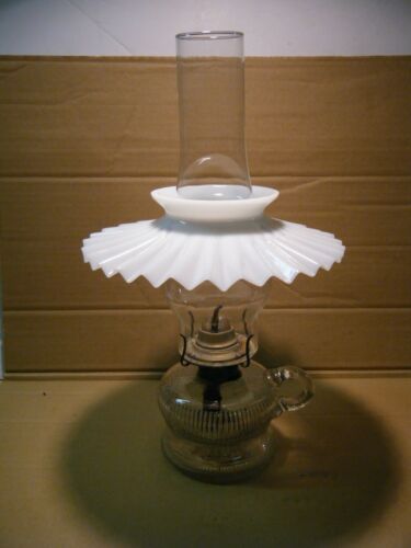 Title (ebay affiliate link): ANTIQUE KEROSENE / OIL LAMP W/ MILK GLASS PETTICOAT SHADE & CHIMNEY