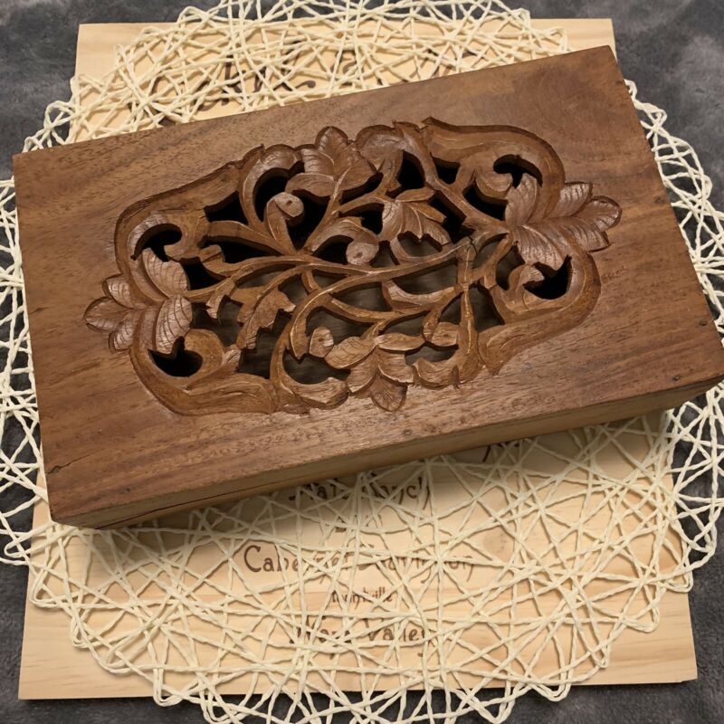 Title (ebay affiliate link): Boho Style Etched Floral Wooden Jewelry Trinket Box Handmade