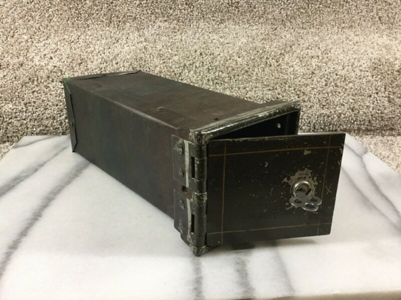 Title (ebay affiliate link): Vtg Metal Lock Box, Cash, Deed Box, Strong Box Postal Safe Wall Insert Key Inlc