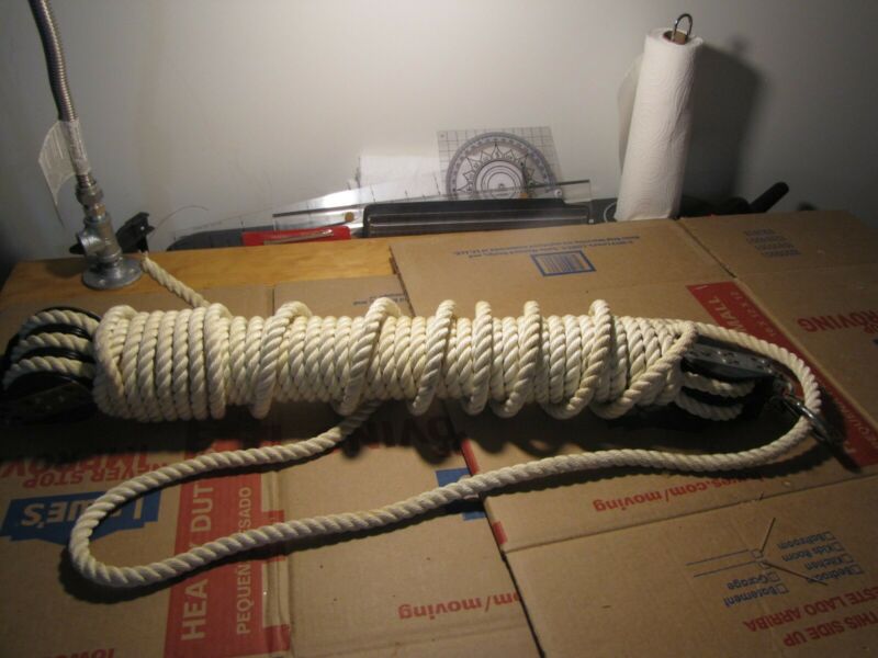 Title (ebay affiliate link): Harden rope pulley block and tackle hoist 50 foot, two triple pully''s w/ss hrdwr