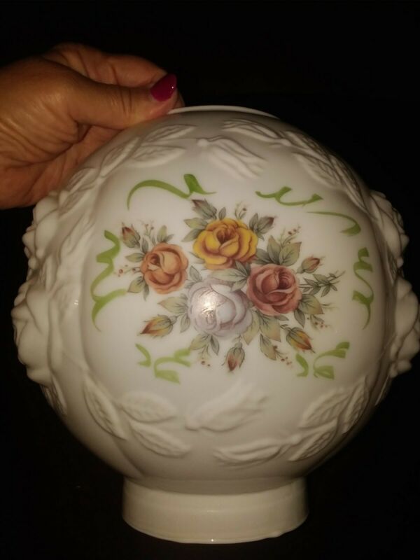 Title (ebay affiliate link): Vintage Milk Glass GWTW Top Ball Lamp Globe 4x8 Embossed & Painted Roses Shade