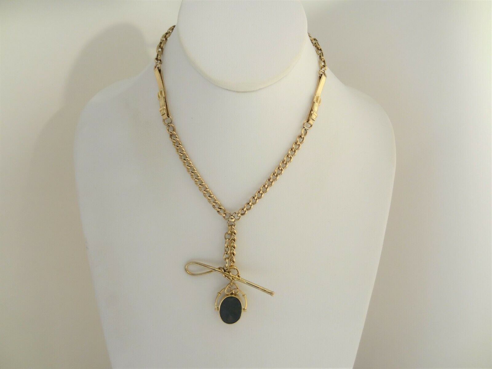 Title (ebay affiliate link): Antique Double Albert Pocket Watch Chain Necklace Equestrian Bloodstone Fob 16"