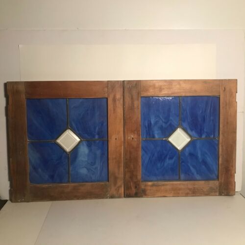 Title (ebay affiliate link): Antique pair wood stained beveled leaded glass cabinet furniture doors