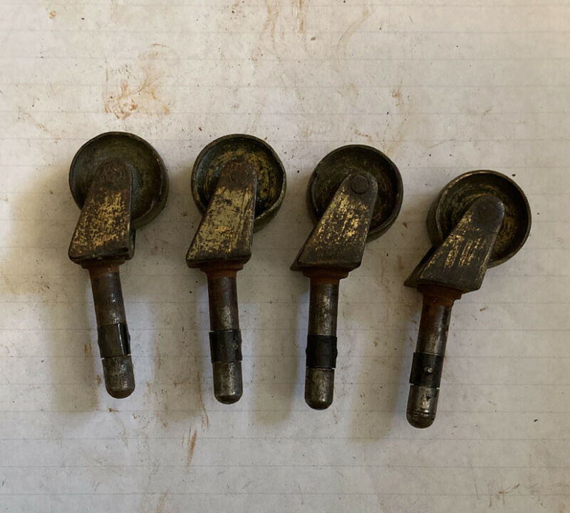 4 Vintage Antique METAL Wheels Casters Furniture Washstand Dresser Chest