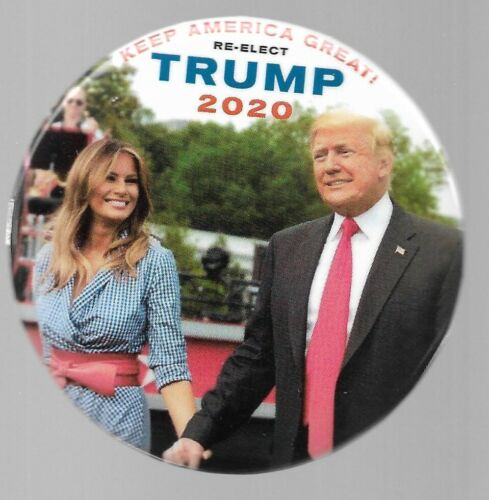 Title (ebay affiliate link): KEEP AMERICA GREAT DONALD AND MELANIA TRUMP 2020 POLITICAL CAMPAIGN PIN