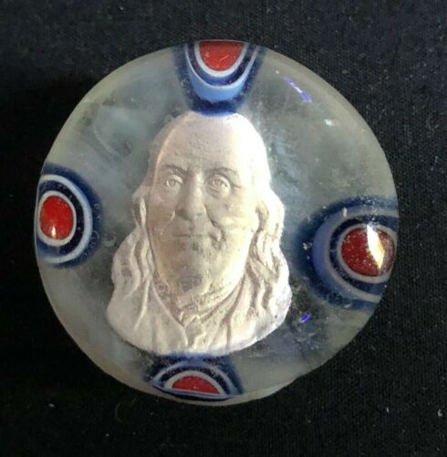 Title (ebay affiliate link): Vintage PAPERWEIGHT BUTTON--- BEN FRANKLIN SULPHIDE--- THERESA RARIG,1 1/2"