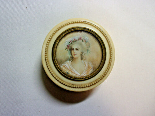 Antique Celluloid Pill Box with Hand Painted Portrait on Lid