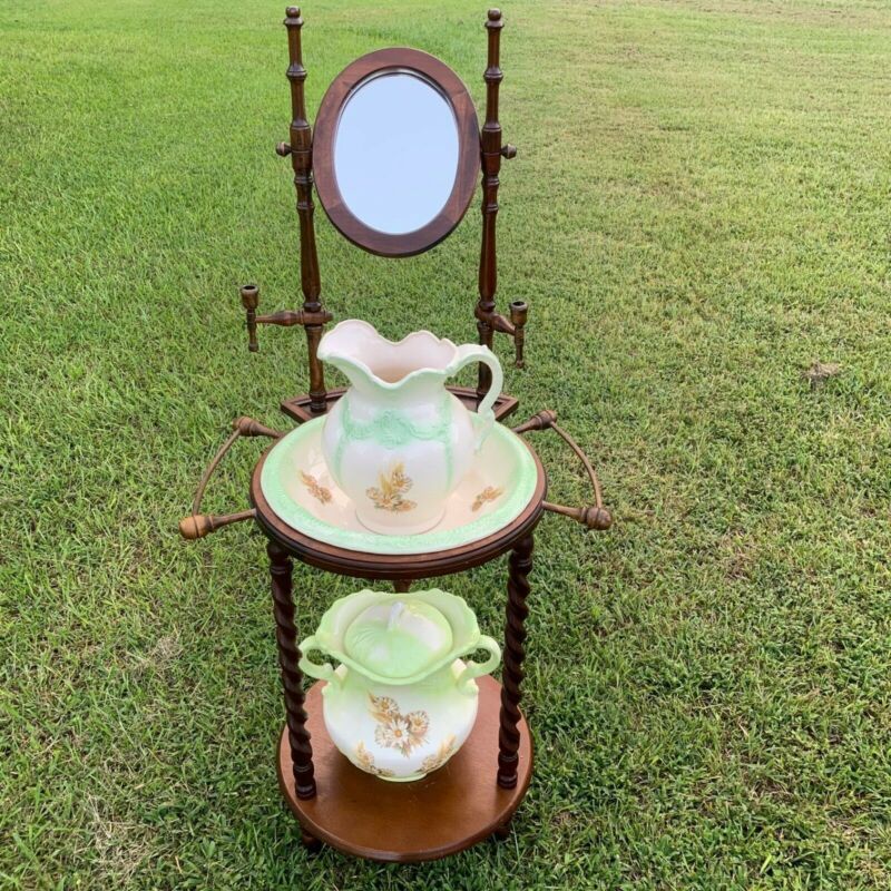 Vintage antique style wash basin stand with mirror and Arnels pitcher/basin