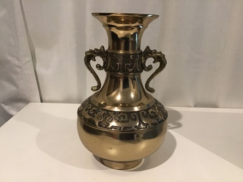 Vintage Brass Decorative Two Handled Vase 24 cm Tall #454