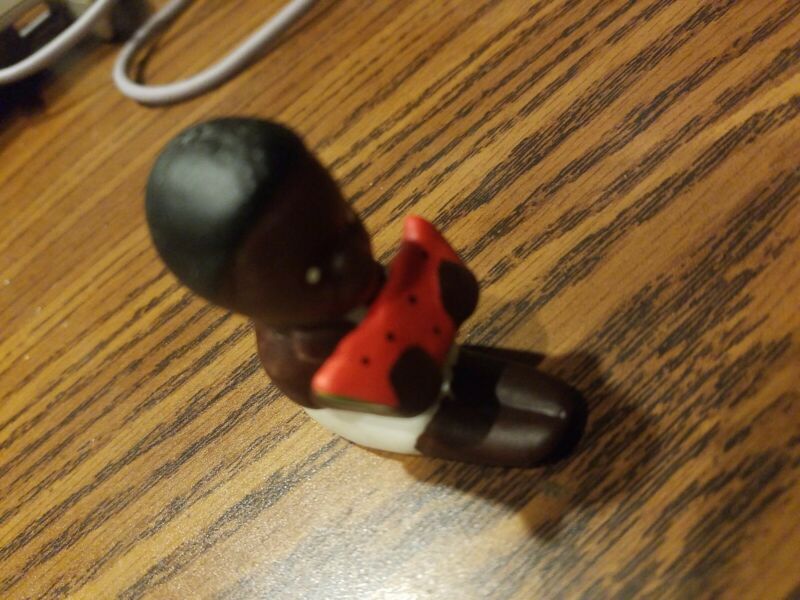 Antique Black Figurine Baby Eating Watermelon Ceramic
