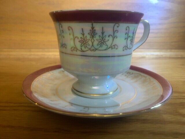 Title (ebay affiliate link): BEAUTIFUL Vintage Cup & Saucer Iridescent Burgundy & Gold HURRY WON''T LAST LONG!