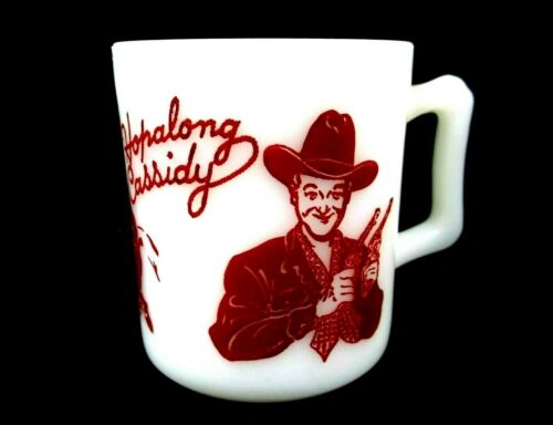 Vintage 1950''s HOPALONG CASSIDY MILK GLASS Mug Cup Western Cowboys antique TV