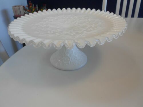 fenton milk glass pedestal cake plate fluted edge-excellent condition 10 1/2"
