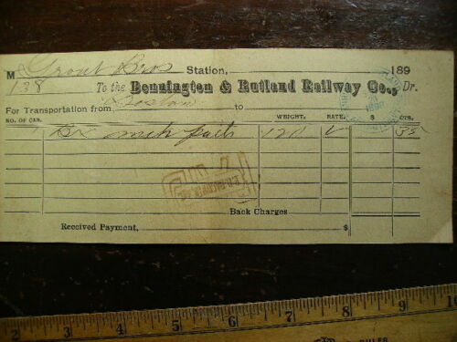 BENNINGTON & RUTLAND RAILWAY 1898 RECEIPT LOT R-19