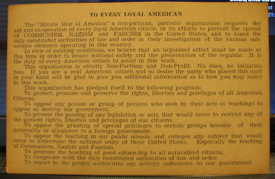 Title (ebay affiliate link): RARE "Minute Men of America" recruitment card 40's(?)