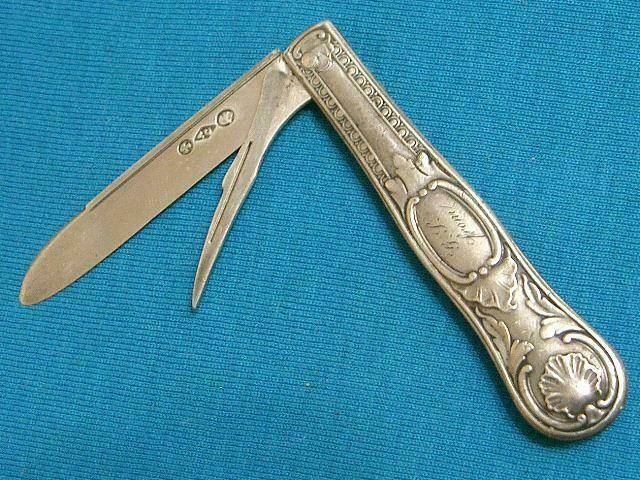 Title (ebay affiliate link): ANTIQUE ALBERT COLES HLMK STERLING SILVER EMBOSSED FOLDING FRUIT KNIFE VINTAGE
