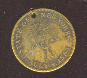 NEW YORK 1855 PROHIBITION LAW CAUSE MEDAL