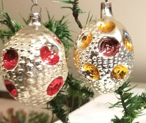 Title (ebay affiliate link): Oval Geometric Pebbled Oval Indents. Two more 1930s German Glass Ornaments.