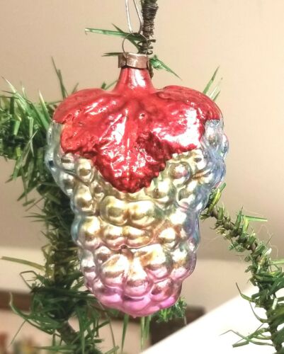 Title (ebay affiliate link): Very Colorful Grape Cluster. Molded Leaves on Top. 1930s German Glass Ornament