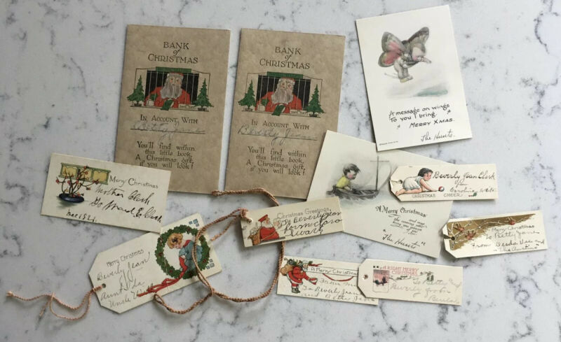 ANTIQUE GROUP LOT OF CHRISTMAS CARDS TAGS PAPER