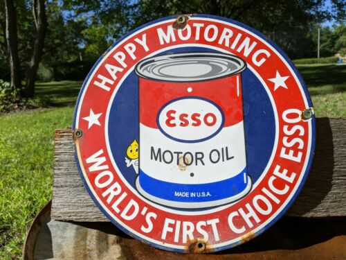 Title (ebay affiliate link): OLD 1950''S ESSO MOTOR OIL PORCELAIN GAS PUMP SIGN "HAPPY MOTORING" STANDARD OIL