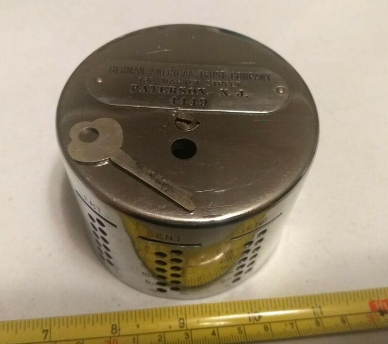 Vintage German American Trust Co Paterson NJ Advertising Coin Money Bank & Key