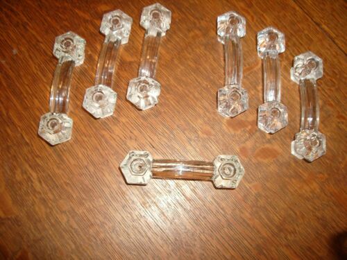 7 Vintage Crystal Glass Drawer Furniture Hardware Handle Pulls NO RESERVE