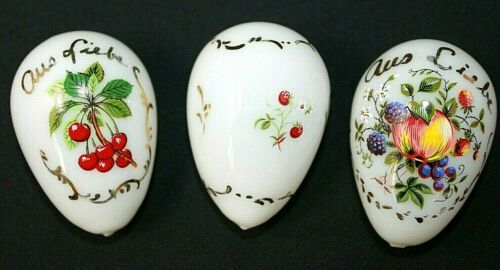 VINTAGE Set of 3 Hand Blown Milk Glass Painted Easter Eggs GERMANY, 2 1/2" Long