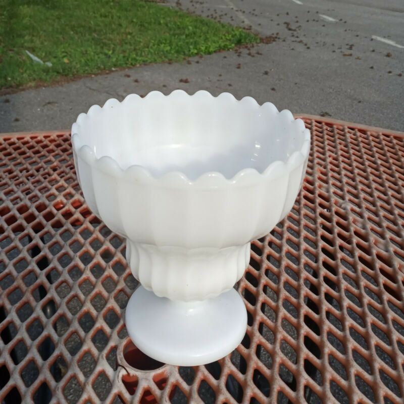 Fluted Vintage Milk Glass Vase 10"