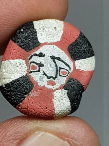 Title (ebay affiliate link): ANCIENT PHOENICIAN GLASS COLOURED GLASS BEAD WITH FACE 700-500 BC 5,6 GR.19 MM