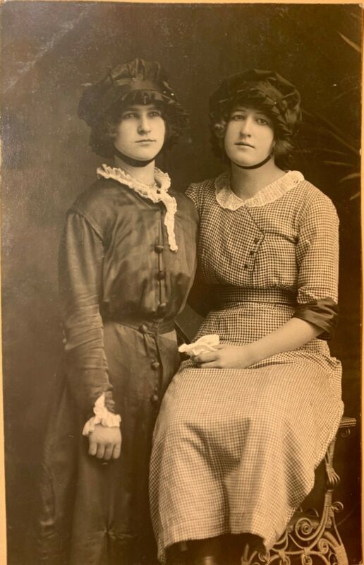 Title (ebay affiliate link): RPPC of Beautiful Women in black bonnets. Unposted