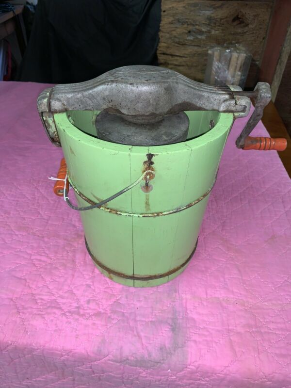 Title (ebay affiliate link): Antique Primitive Wooden Hand Crank Ice Cream Maker Churn Bucket