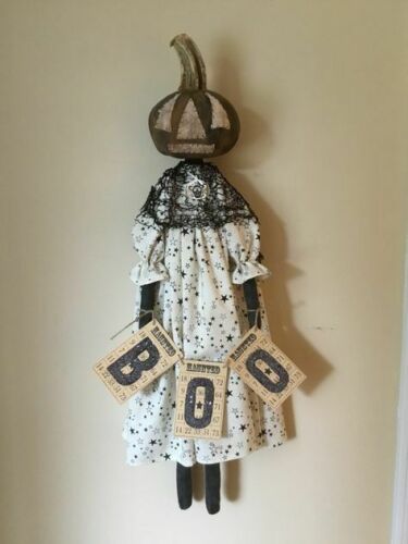 Title (ebay affiliate link): PRIMITIVE RAGGEDY HAPPY HALLOWEEN BLACK PUMPKIN "BOO" DOLL