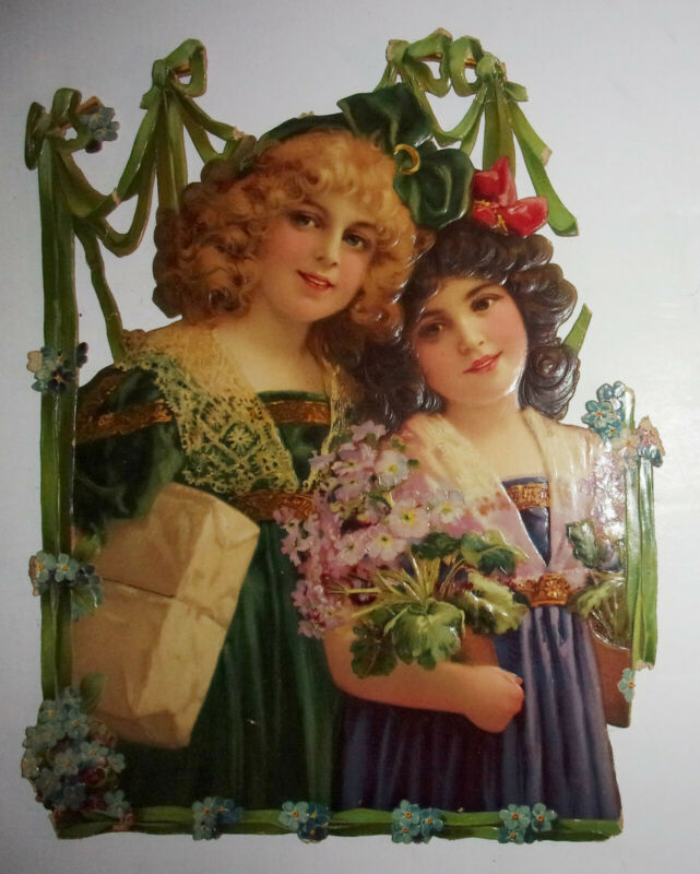 Title (ebay affiliate link): Large Antique Victorian Diecut embossed 2 girls flowers die cut 12 x 9 1/2 #171