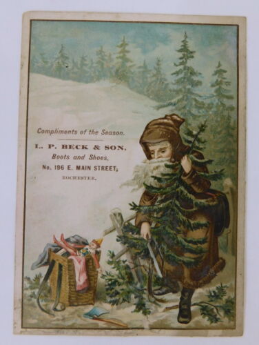 Antique Victorian Trade Card Santa Claus Christmas Brown Robe - Beck & Son Shoes