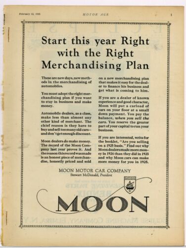 Title (ebay affiliate link): 1925 Moon Motor Cars Ad: Start This Year Right! - St. Louis, Missouri