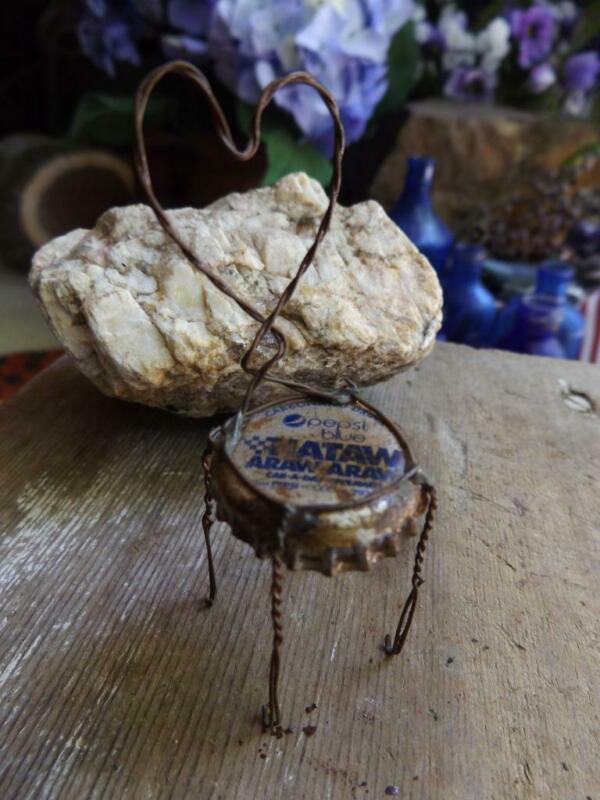 Title (ebay affiliate link): Primitive Vintage Folk Art Mini Tin Wire Chair With Pepsi Bottle Cap Seat Heart