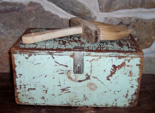Title (ebay affiliate link): old vintage primitive old green paint wood storage box chest & paint brush