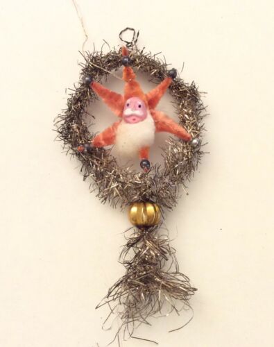 Title (ebay affiliate link): ANTIQUE Tinsel Wreath Glass Bead Chenille Santa Christmas Ornament