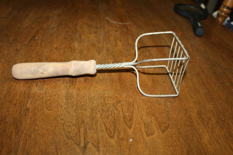 4 Antique Wooden Handle POTATO MASHER SPOONS