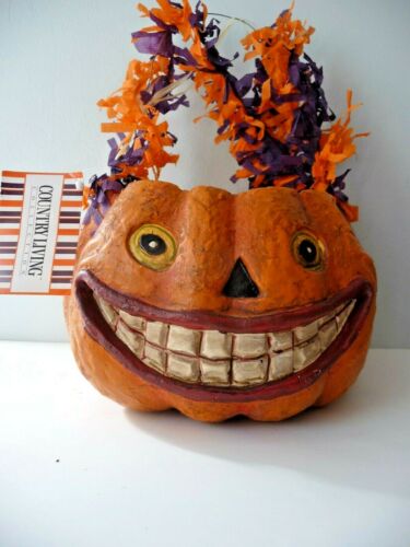 Title (ebay affiliate link): Prim Antique Vtg Style Large Halloween Paper Mache Jack-O-Lantern Pumpkin Bucket