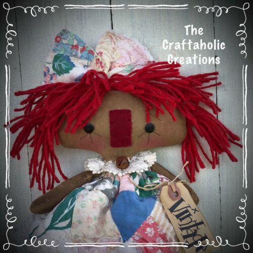 Title (ebay affiliate link): * OOAK primitive VINTAGE raggedy Ann doll ANNIE cutter QUILT dress VERY AGED