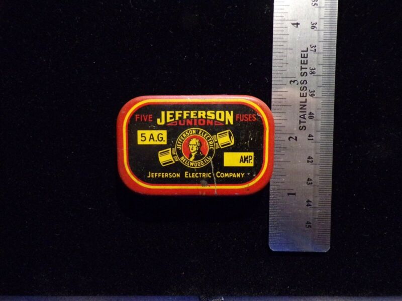VINTAGE JEFFERSON UNION 5 A.G. FUSE TIN (with 4 fuses)