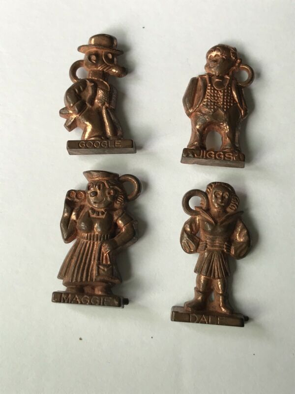 Title (ebay affiliate link): Lot of 4 vintage KFS cracker jack prizes toys charms Maggie Dale Jiggs Google