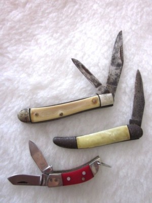 Title (ebay affiliate link): KNIFE LOT Antique Vtg Kutmaster 3 Blade Pocket Folding