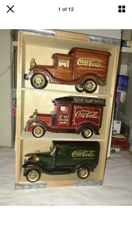 Title (ebay affiliate link): 3 Pc. Coca Cola Model A Wooden Delivery Trucks Coke Display Case Vintage Edition