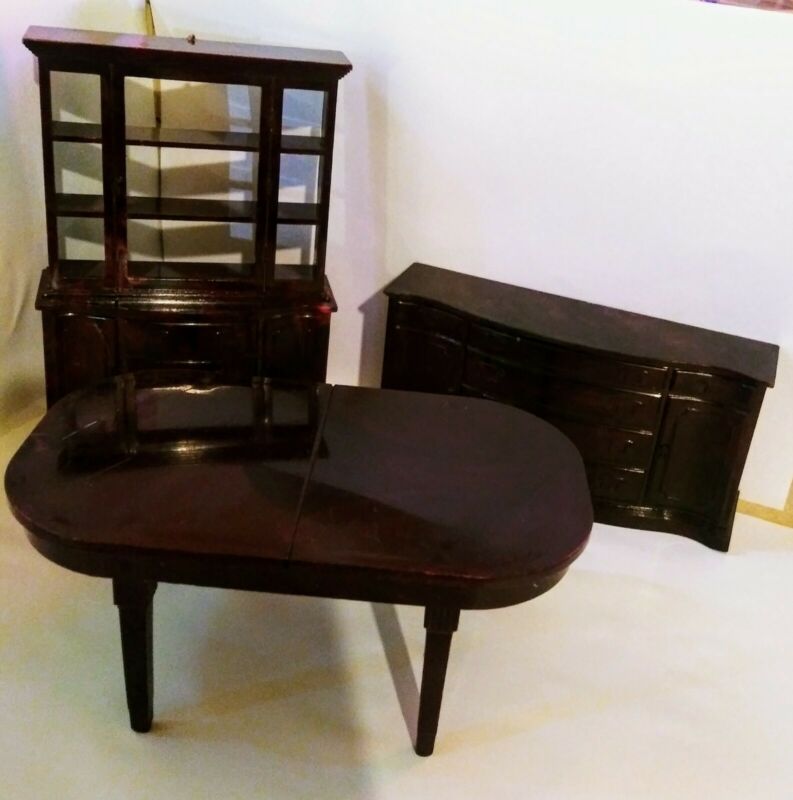 Marx Vtg Dining Room Dollhouse Furniture Plastic table hutch buffet 1:16 Marxie