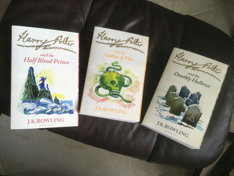 Title (ebay affiliate link): 3 Harry Potters Goblet of Fire, Deathly Hollows, Half Blood Prince-Rowling NEW!